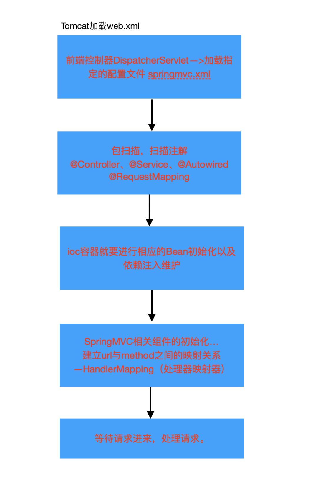 我们来梳理下流程,为了更加清晰手写 SpringMVC 框架的思路,我画了下面这张图: