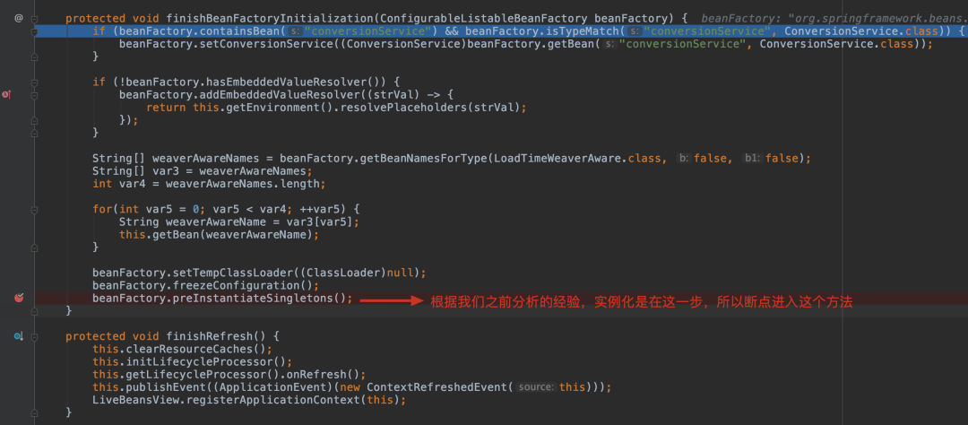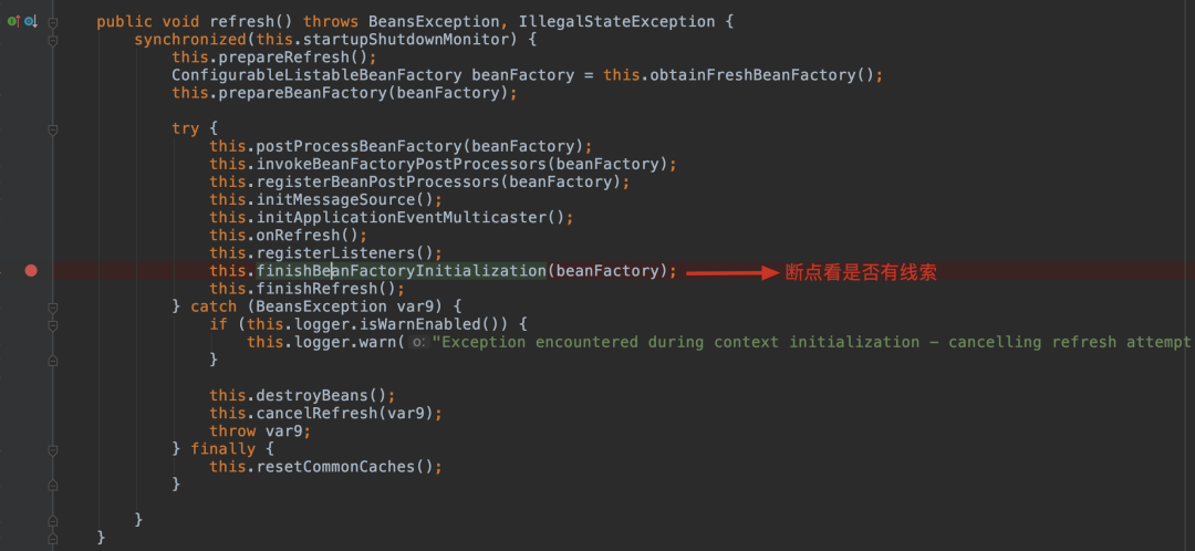 以往:如果要给一个对象产生代理对象,我们知道是在AbstractApplicationContext的refresh方法中, 那么能不能在这个方法中找到什么我们当前场景的线索?