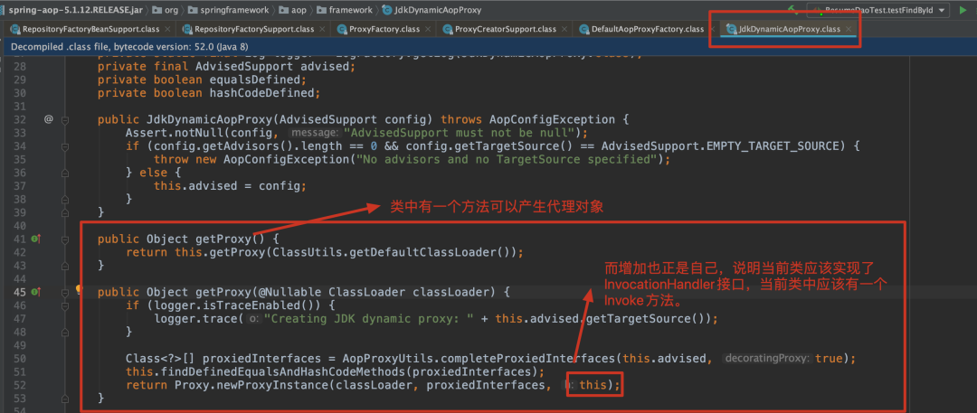 由此可⻅,JdkDynamicAopProxy会生成一个代理对象类型为SimpleJpaRespository,而该对象的增强逻辑就在JdkDynamicAopProxy类的invoke方法中。