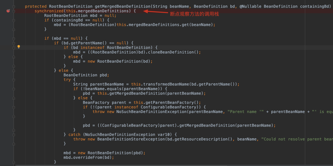 mergedBeanDefinitions.put Find Usages 反调找到该方法: