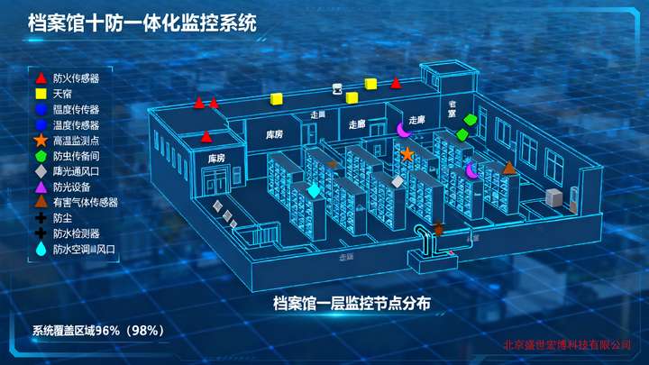 构建 “监测 - 预警 - 处置 - 追溯” 全链条防护体系,实现 “十防” 措施协同联动,确保库房环境指标符合《档案馆建筑设计规范》(JGJ25-2010)及《档案库房技术管理暂行规定》要求,档案实体保存寿命延长 30% 以上,信息泄密风险降至零。