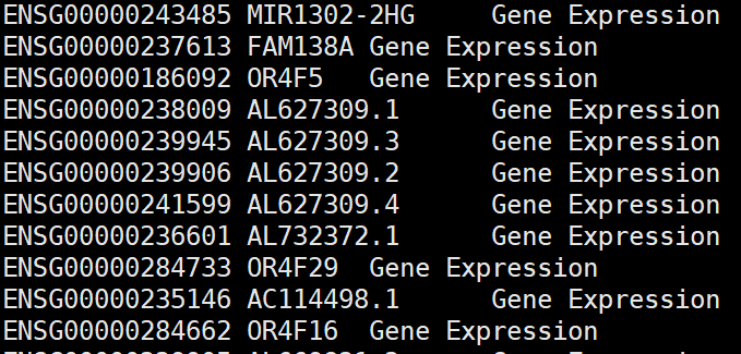 zless features.tsv.gz.bak |sed 's/$/\tGene Expression/' >features.tsv