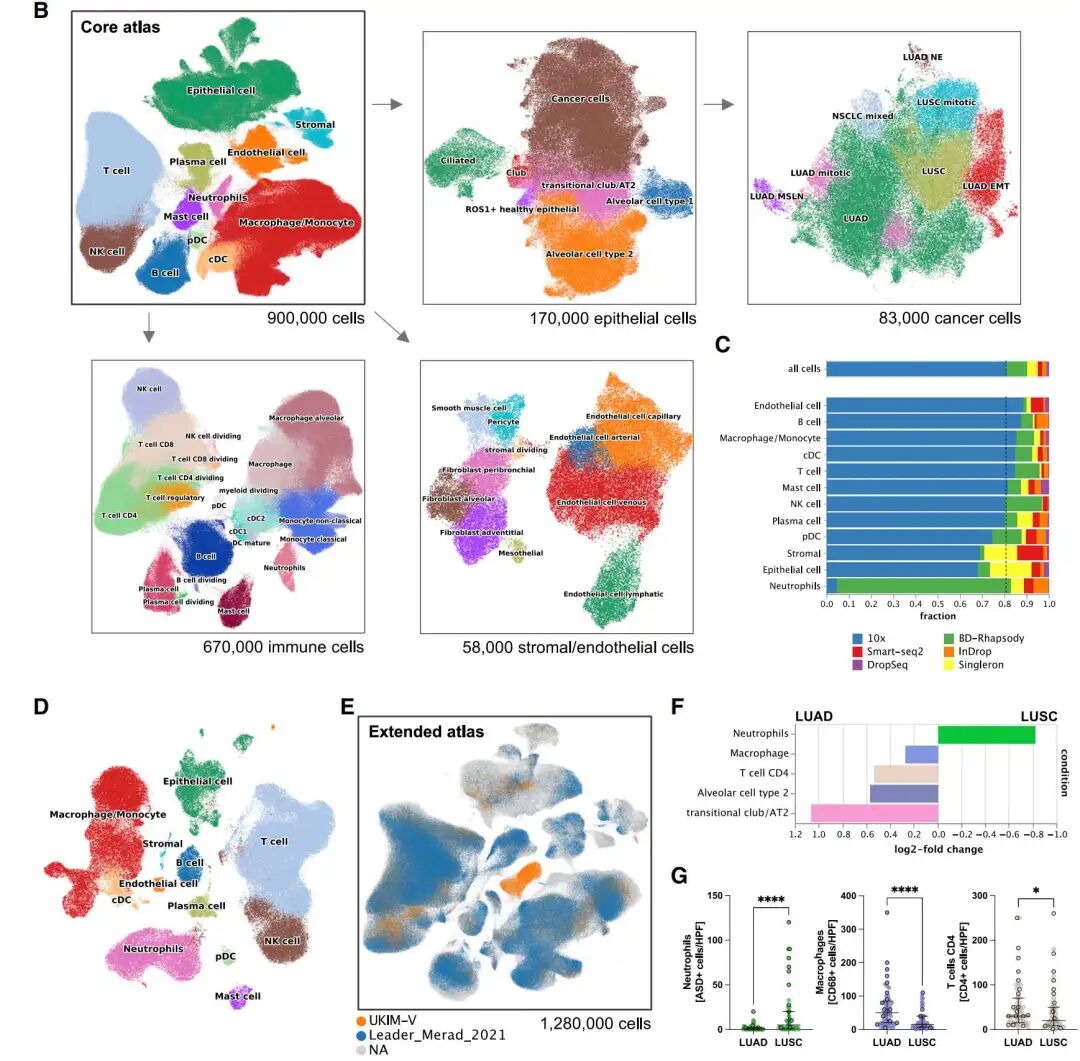 作者的核心内容为通过整合19项研究、21个数据集共计298名患者的505份样本(图1A),首次构建了非小细胞肺癌核心图谱。