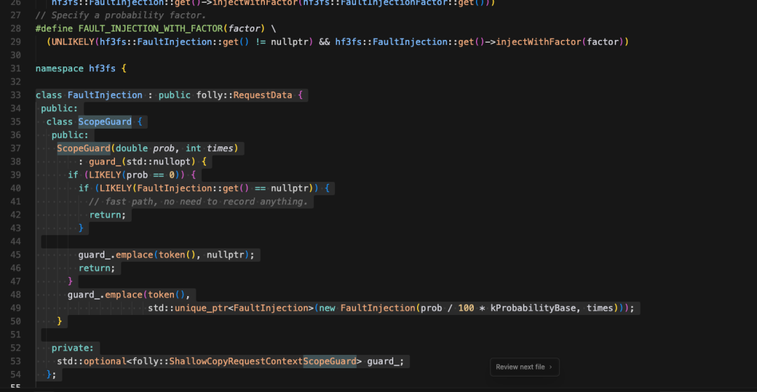 hf3fs::FaultInjection::ScopeGuard FB_ANONYMOUS_VARIABLE(guard)(prob, times)