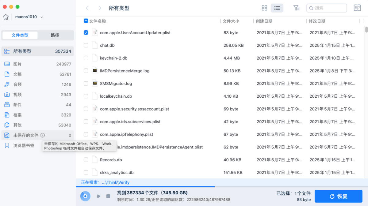 如果以上3种方法都无法恢复,说明文件夹的原始数据未被备份,且已从系统临时存储中清除,此时需要借助专业的数据恢复软件。易我数据恢复Mac版是专为苹果电脑设计的恢复工具,支持M1/M2/M3/T2芯片设备,能深度扫描磁盘,精准恢复误删、格式化、系统崩溃等场景下丢失的文件夹,操作简单且成功率高。