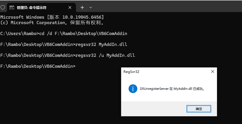 6.3.卸载DLL,命令行需要以管理员权限运行,然后运行Remove.reg卸载注册表就搞定了