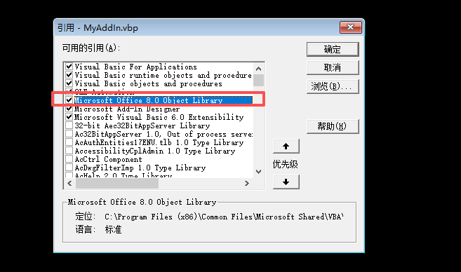 3.1.先删除默认的Microsoft 0ffice 8.0 object Library类库
