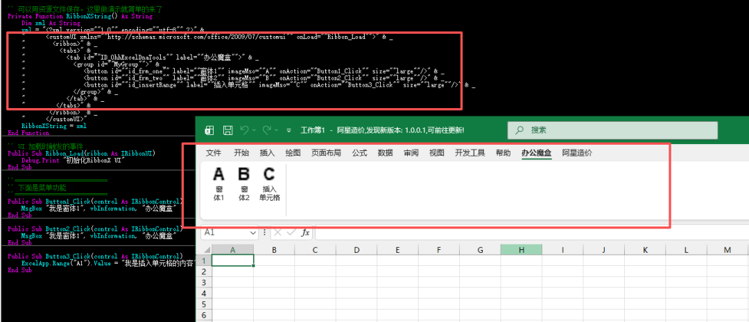 5.4.注意每次,编写代码后重新运行代码,均要关闭Excel重新打开,才能加载到最新的代码