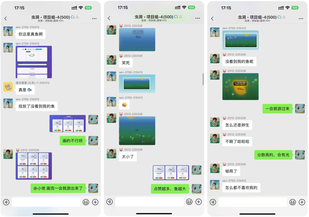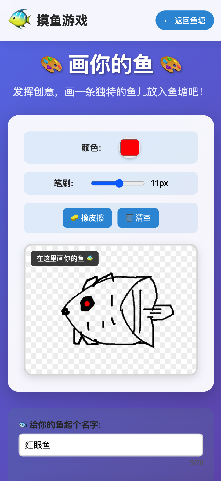 在鱼塘居民下,可以看到各个伙伴画的各种鱼。你可以对这些鱼点一个喜欢或者不喜欢。