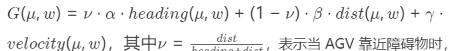 有关避障轨迹的权重自动增加,此时 AGV 会优先选择能够避开障碍物的轨迹,减少对目标位置的关注。