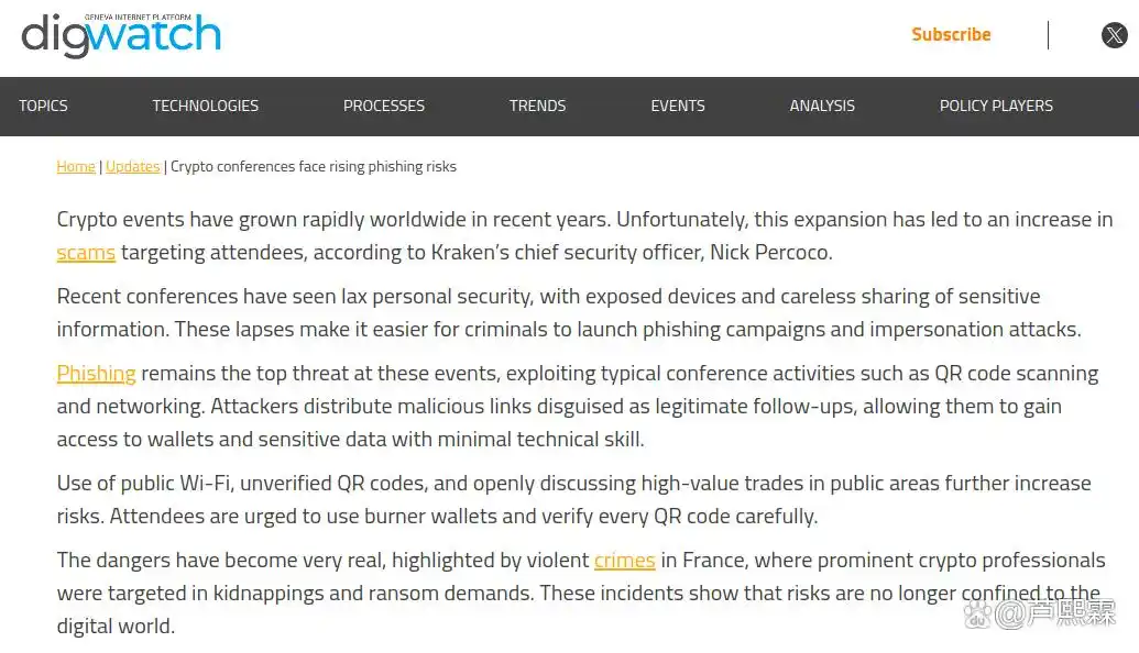 加密货币大会作为区块链产业生态的关键节点,承担着技术展示、项目融资、社区建设与政策对话等多重功能。据不完全统计,2024年全球举办各类加密会议超过300场,单场参会人数常达数千人,其中不乏持有大量数字资产的投资者、开发者与交易所高管。此类人群的高度集中,使其天然成为网络犯罪分子的目标。
