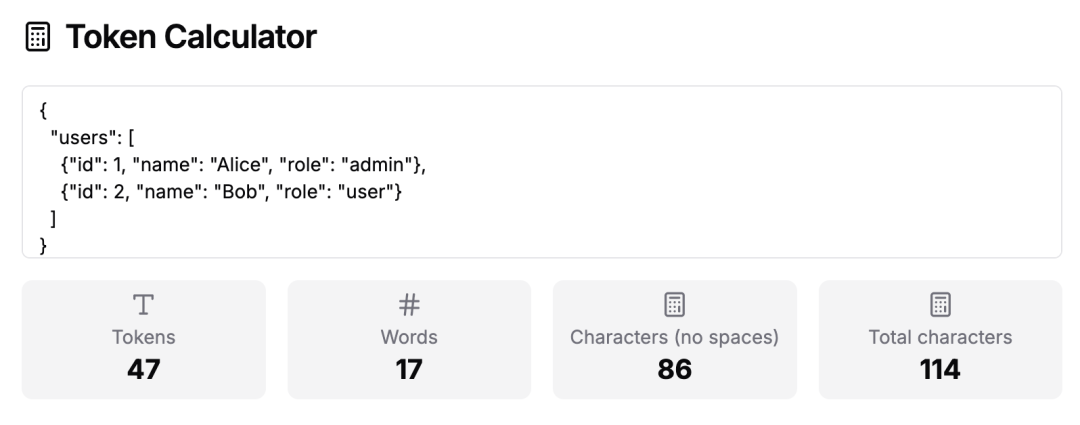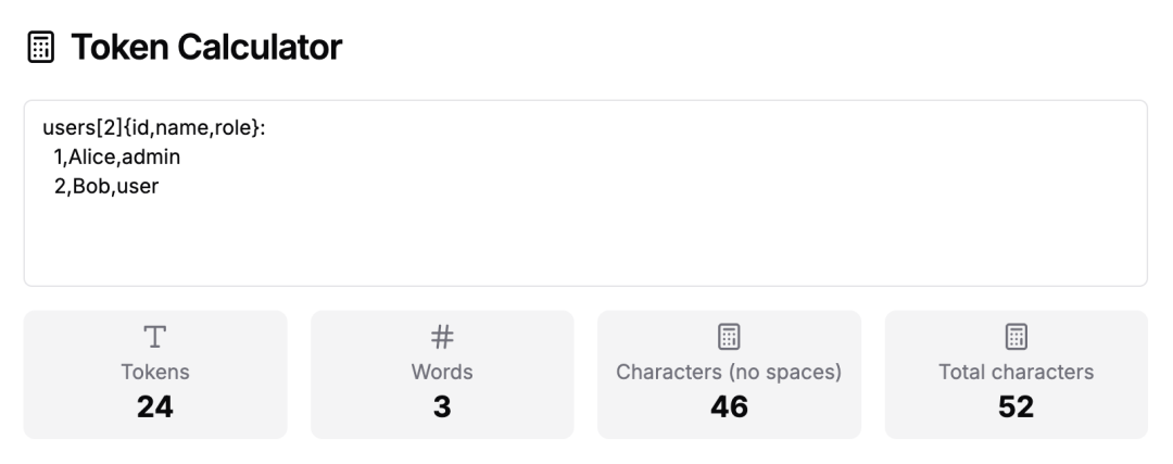 差异的核心在于:TOON 用“缩进 + 一次性字段声明”的方式消除了绝大部分语法标点的冗余;当你在生产环境每天传输成千上万条记录时,冗余标点的累计开销会直接转化为可观的 API 费用。实践表明,TOON 在输入侧常带来 40–60% 的 token 节省。