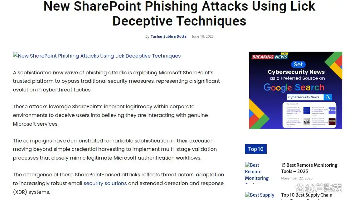 近年来,随着企业办公环境向云原生架构迁移,Microsoft SharePoint作为主流的企业内容协作平台,因其深度集成于Microsoft 365生态、具备高可用性与合规性保障,被广泛部署于各类组织内部。然而,这种高度信任的平台属性正被高级持续性威胁(APT)及网络犯罪团伙所利用,催生出一类新型钓鱼攻击范式——即“信任滥用型钓鱼”(Trust-Abuse Phishing)。此类攻击不再依赖传统邮件附件或显式恶意链接,而是通过伪装成合法的SharePoint共享文档请求,诱导用户在看似可信的界面中完成多阶段身份验证,最终窃取账户凭证或植入恶意载荷。
