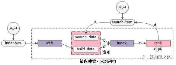 画外音:看似“很小”的差异,架构实现上难度却差很多,全网搜索如何“实时”发现“全量”的网页是非常困难的,而站内搜索容易实时得到全部数据。