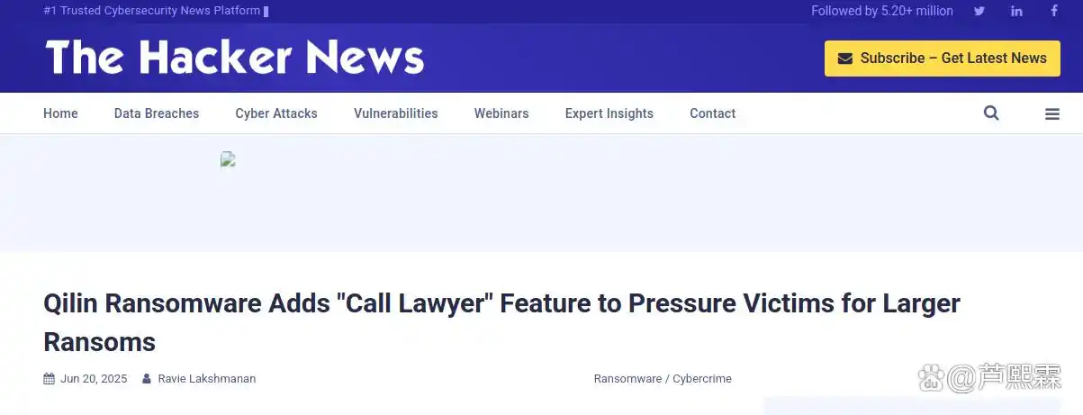 关键词:Qilin勒索软件;“致电律师”功能;社会工程;勒索软件即服务(RaaS);心理施压;多层防御