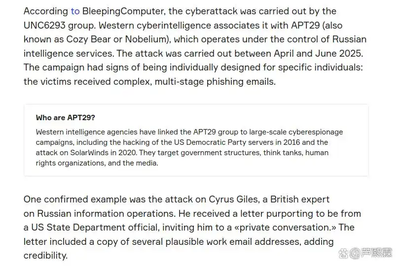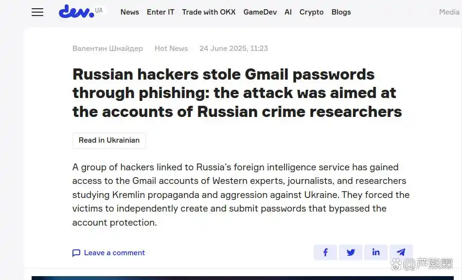 2025年初,多家网络安全机构披露了一起由疑似俄罗斯背景黑客组织发起的定向网络攻击。攻击目标明确指向研究俄罗斯有组织犯罪、腐败及地缘政治议题的国际学者、记者与非政府组织成员。攻击者通过精心构造的钓鱼邮件,诱导受害者点击伪装成Google官方登录页的链接,进而窃取其Gmail账户凭证。部分受害者账户在数小时内被用于向其联系人发送次级钓鱼邮件,形成横向传播链。更严重的是,部分账户中存储了未加密的敏感研究资料、线人联系方式及合作机构内部通信记录,导致潜在的人身安全与信息泄露风险。