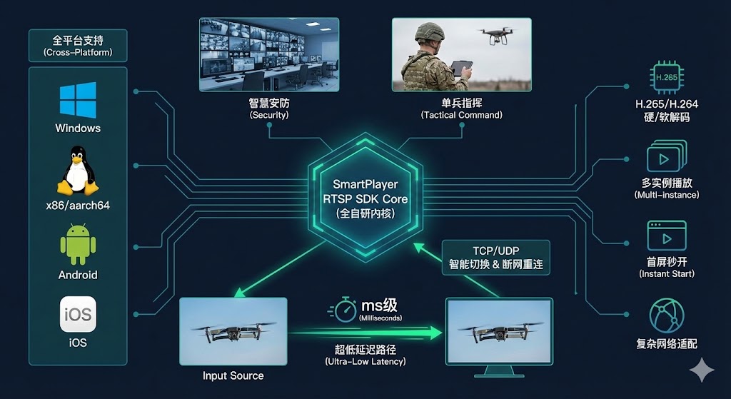 SDK 在低缓冲策略、首帧启动速度和网络模式切换方面的设计,让画面反馈更加接近“实时视野”,从而让设备的操控变得更可预期。