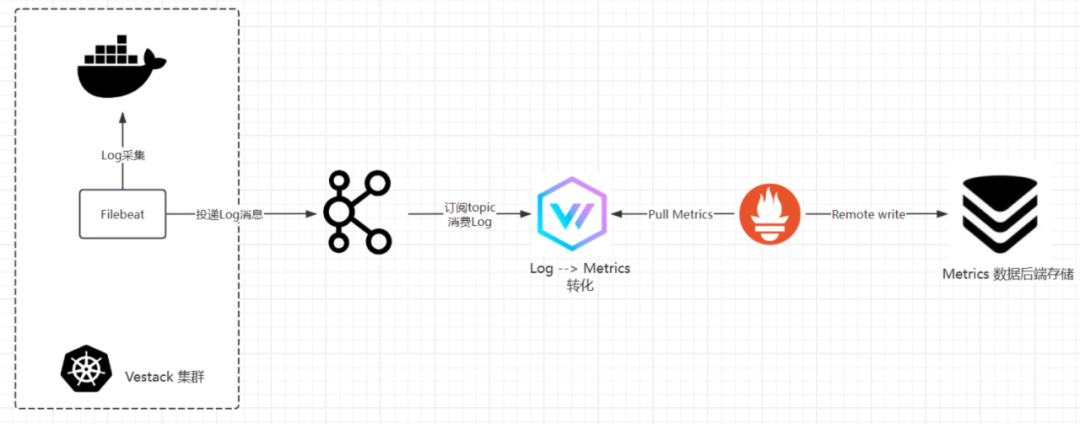 为解决上述问题,可观测性团队采用了“日志转指标”的思路,最终选择 Vector+Prometheus 作为核心架构。