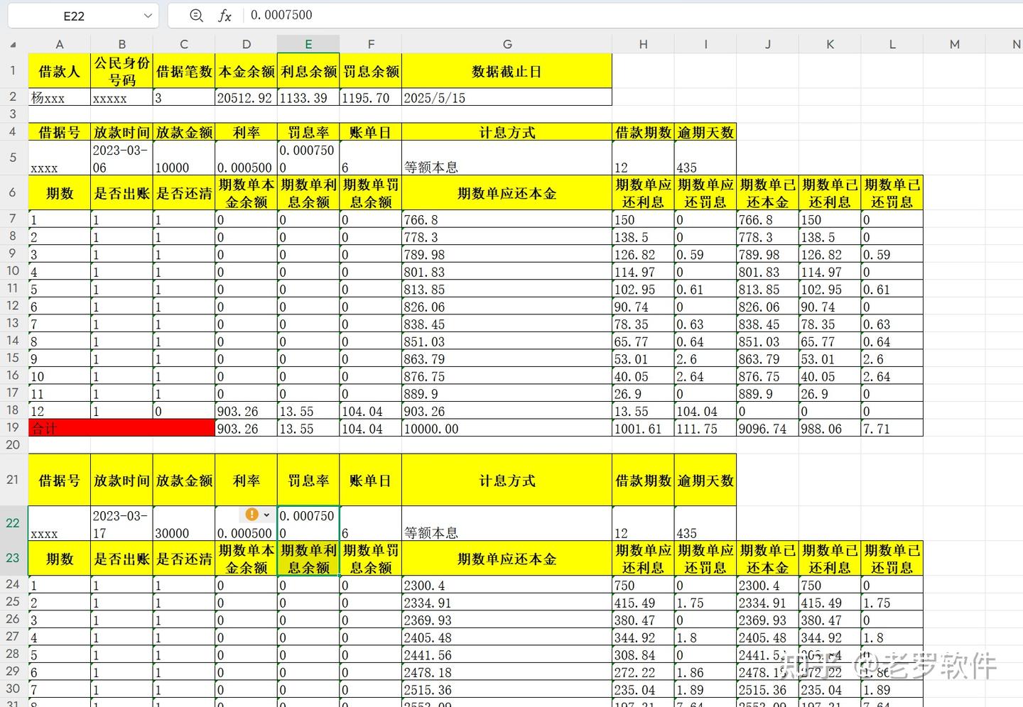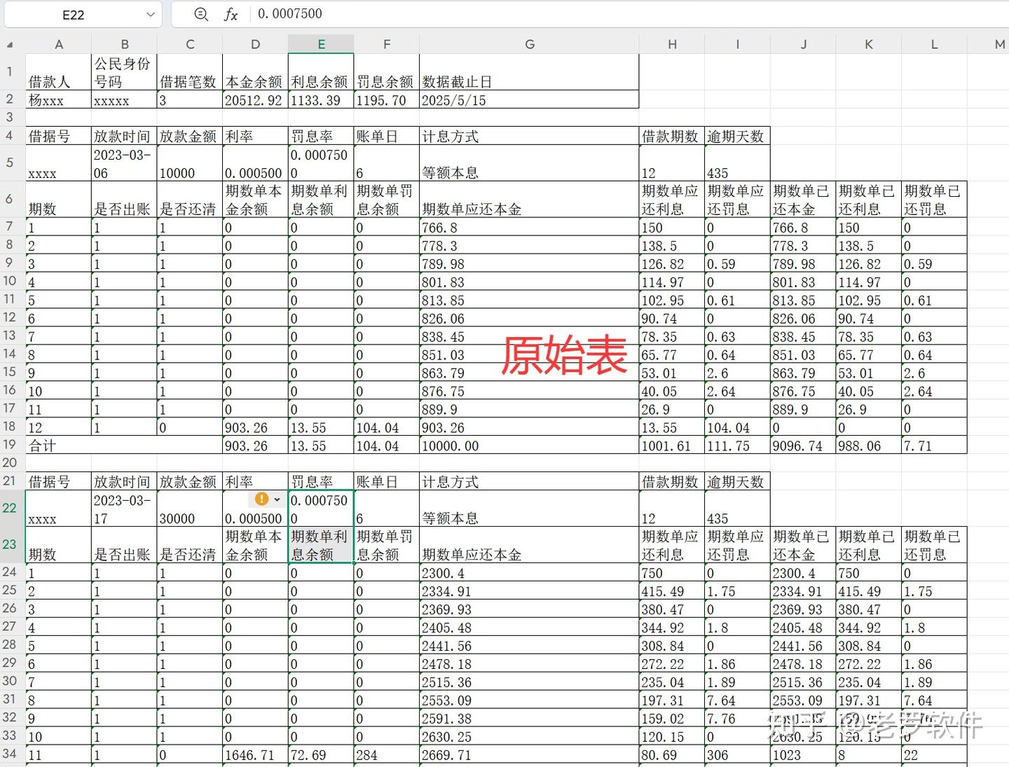 对应有一批excel,里面是表格,需要调整表格的样式,还有打印的样式,我找了一个excel打开如下: