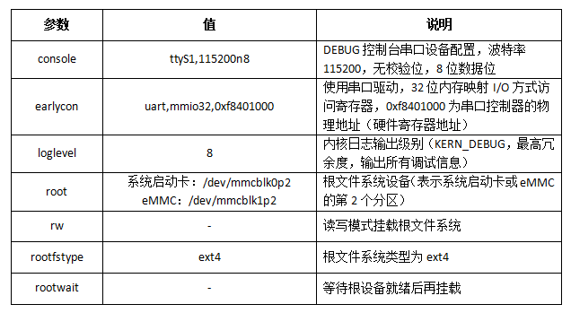 bootargs 'console=ttyS1,115200n8 earlycon=uart,mmio32,0xf8401000 loglevel=8 root=/dev/mmcblk0p2 rw rootfstype=ext4 rootwait'