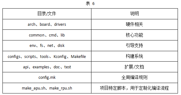 U-Boot源码位于LinuxSDK源码u-boot目录,具体说明如下表。