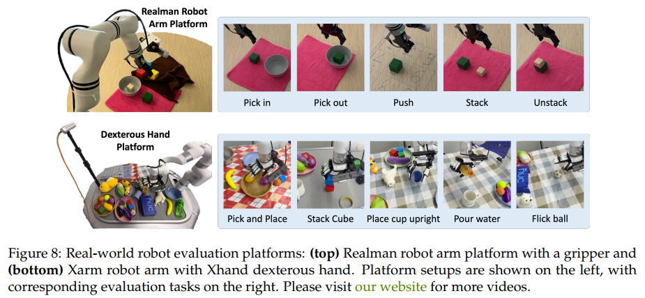 在SIMPLER和LIBERO基准测试中,villa-X均达到最优性能。在真实机器人平台上(Realman夹爪和Xhand灵巧手),villa-X在任务执行和泛化测试中均优于现有基线,特别是在具身迁移任务中表现突出。