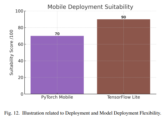 在移动端部署方面,TensorFlow Lite(TFLite)是专为移动和嵌入式设备设计的轻量级推理引擎,支持量化和硬件加速。TFLite Micro进一步扩展了在微控制器上的应用,可在内存仅几KB的设备上运行模型。PyTorch Mobile虽然也支持Android和iOS平台,但其运行时库较大,且优化程度不及TFLite。因此,TensorFlow在移动和嵌入式部署中更具优势。