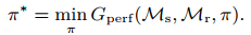 现实鸿沟被定义为仿真POMDP Ms真实POMDP Mr之间的差异,主要包括动态差距Gdyn和感知差距Gperc,分别衡量了动态模型和观测模型之间的差异。此外,性能差距Gperf衡量同一策略在仿真与现实环境中期望回报的差异。仿真到现实迁移的目标是找到最小化性能差距的策略,即: