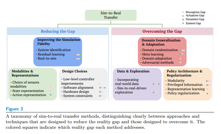 针对现实鸿沟,现有方法可分为两类:一是通过改进仿真来“缩小”鸿沟,二是通过策略设计来“克服”鸿沟。