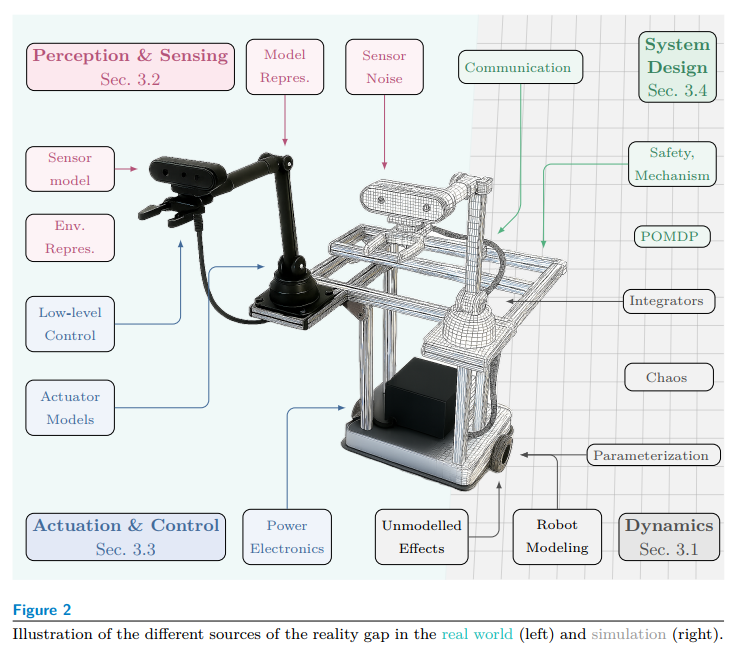 现实鸿沟的来源可分为四大类:动态、感知、执行与控制系统设计。