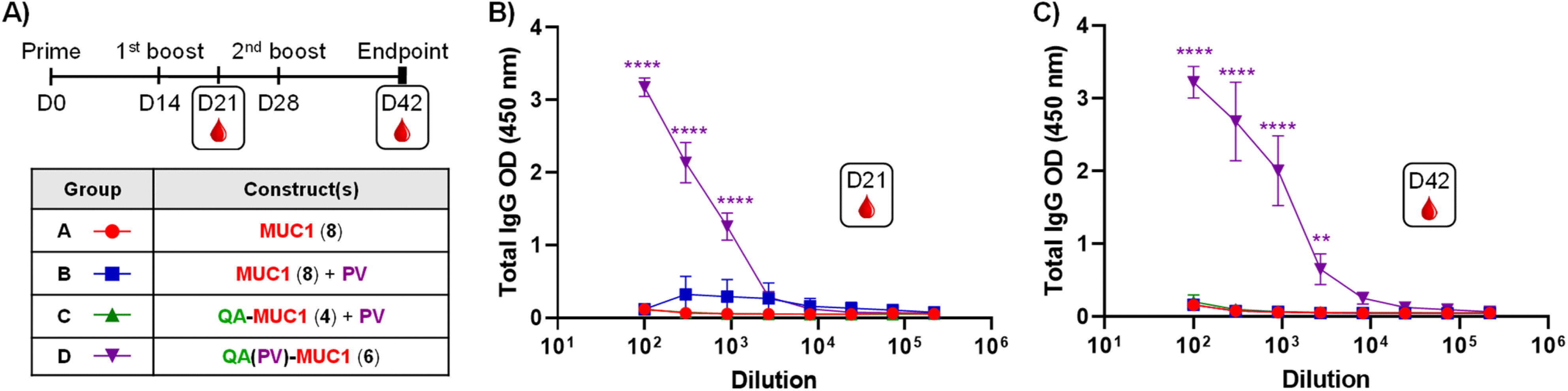 图3. QS-21可提高小鼠血清中抗MUC1抗体(IgG)的水平[5]