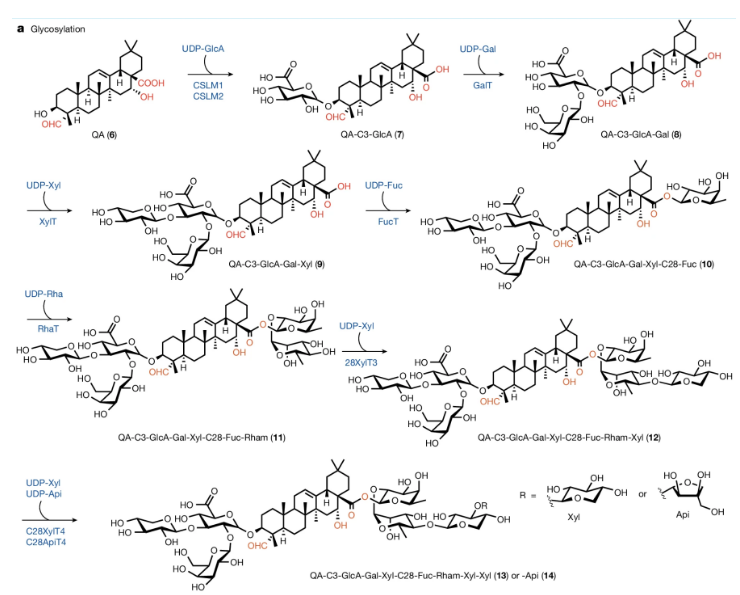 图1. QS-21的结构和生物合成机制[1]