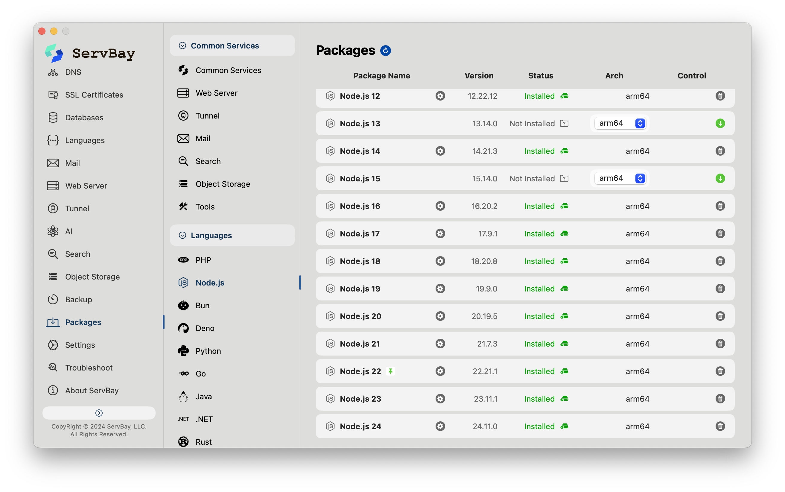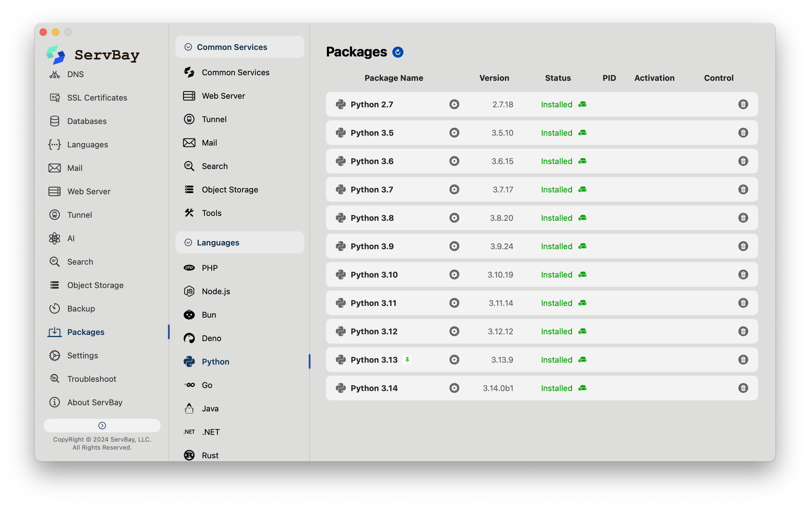如果想快速体验上述MCP工具,而不希望把时间浪费在配置环境依赖上,ServBay 是一个非常务实的解决方案。