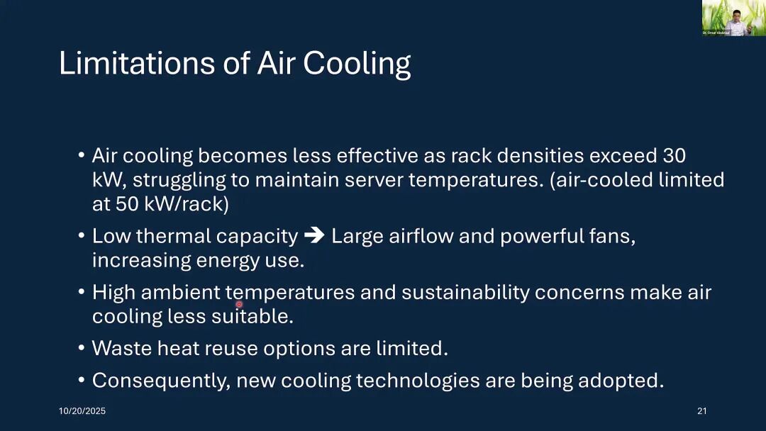 1. 密度上限低:空气低热容特性导致机架密度超过30kW后效率骤降,即使主动式后门冷却也难以突破75kW/机架;