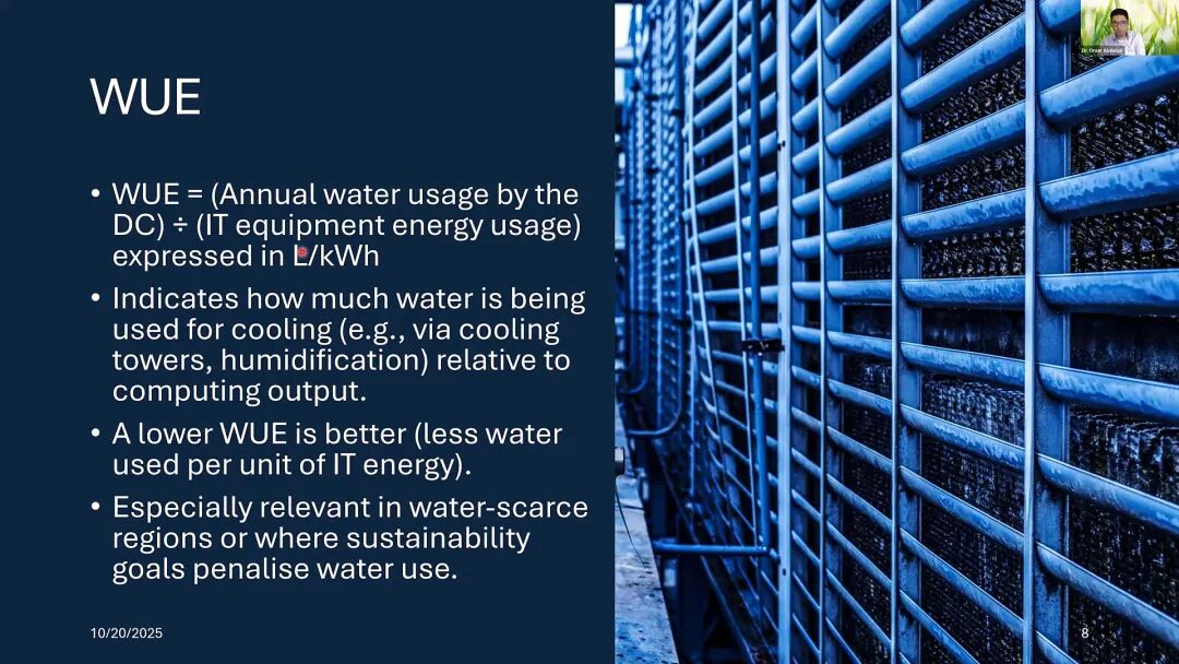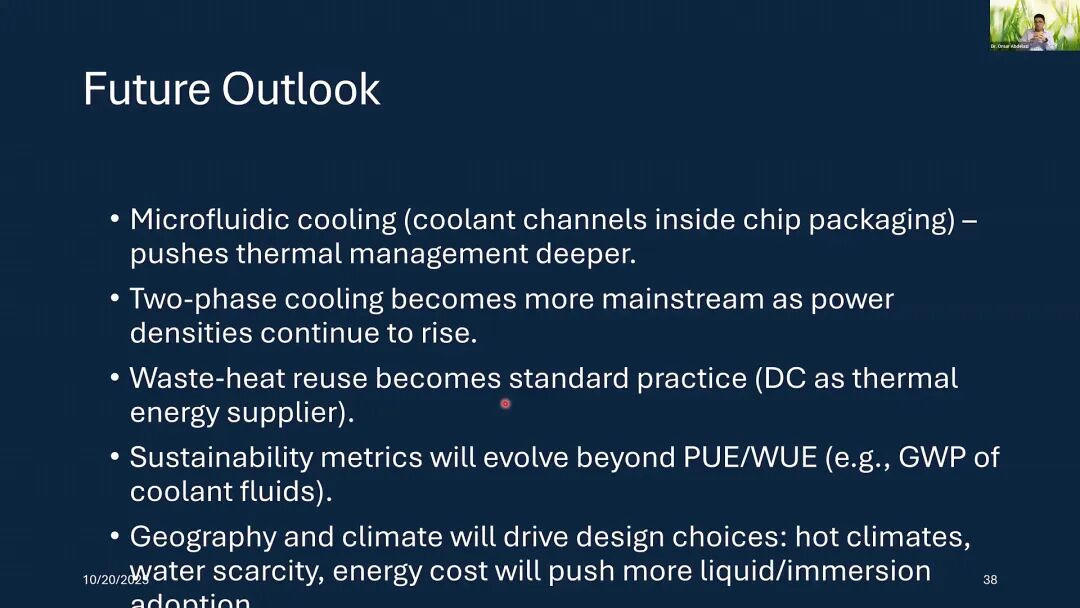 - 双相冷却主流化:随着功率密度持续攀升,两相浸没冷却将成为高密场景的标准配置; - 废热回收标准化:数据中心将从"能耗大户"转变为"热能供应商",废热再利用成为标配; - 指标体系升级:可持续评估将超越PUE/WUE,纳入碳足迹、水资源足迹(WP)等多维指标; - 地域化设计:高温、缺水地区将优先采用浸没冷却,而寒冷地区将强化免费冷却与废热回收的结合。