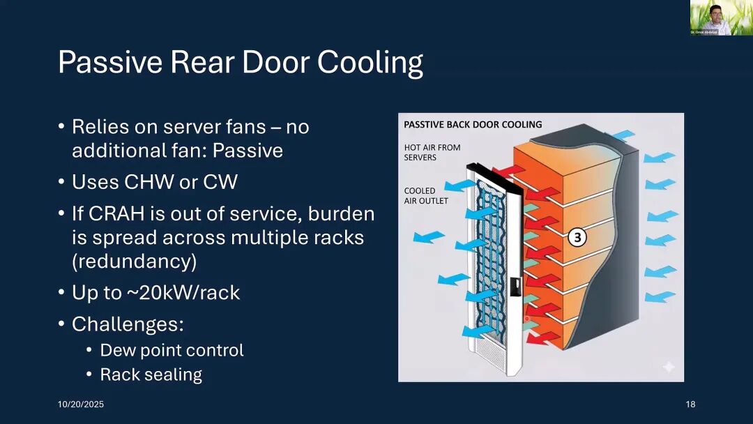 为提升传统空冷的性能,行业衍生出直接蒸发冷却、被动后门冷却(依赖服务器风扇,支持20kW/机架,需露点控制)、主动后门冷却(配备热交换器风扇,支持75kW/机架)、带自由冷却的冷水机(根据环境温度切换制冷模式)等优化方案。尽管如此,空冷系统仍存在本质短板: