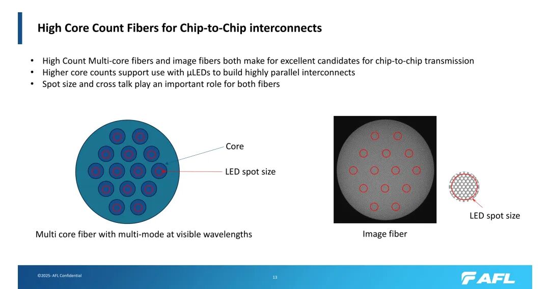成像光纤则无需精确对准,单根光纤可支持多种LED布局,适配性更强;但劣势同样明显,其耦合损耗和插入损耗高于对准良好的MCF,在数据中心的应用尚不成熟,且在LED与探测器的连接(如透镜、反射镜、可分离连接器)方面仍存在诸多不确定性。两种技术的互补性为不同场景提供了差异化选择,推动高芯数光纤应用的全面覆盖。