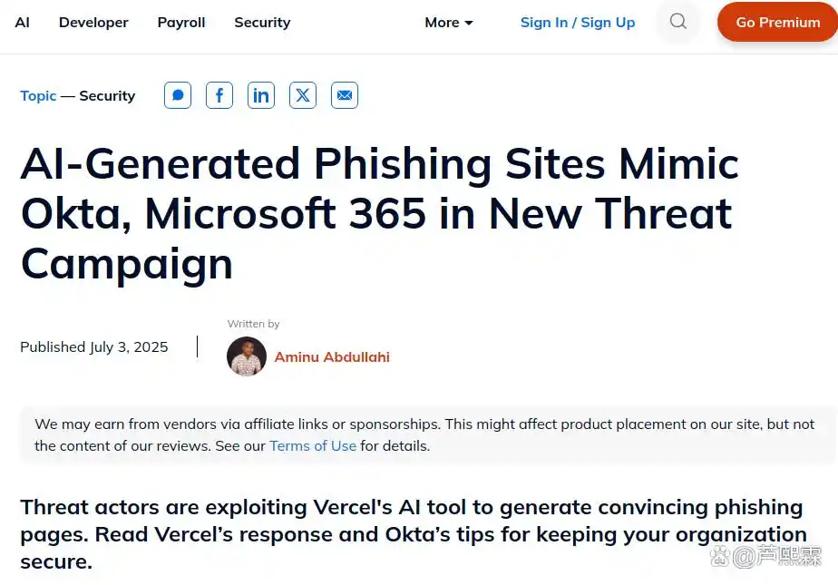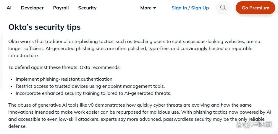 关键词:人工智能滥用;网络钓鱼;Vercel;Okta;前端克隆;身份认证安全;开发平台安全