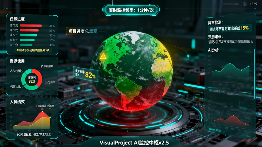 AI能够实时监控项目的进展情况,收集和分析各种数据,包括任务进度、资源使用情况、人员绩效等。维普时代VisualProject的动态资源配置模块正是依托这一能力,其AI模型可实时追踪任务完成率、人员负载等数据。当某开发任务因技术难题滞后时,系统会自动分析所需资源类型,从进度超前的任务中调配匹配技能的人员,并同步更新项目计划。某金融科技公司使用该功能后,人力资源利用率提升28%,项目延期率从22%降至8%,彻底解决了静态资源分配的弊端。