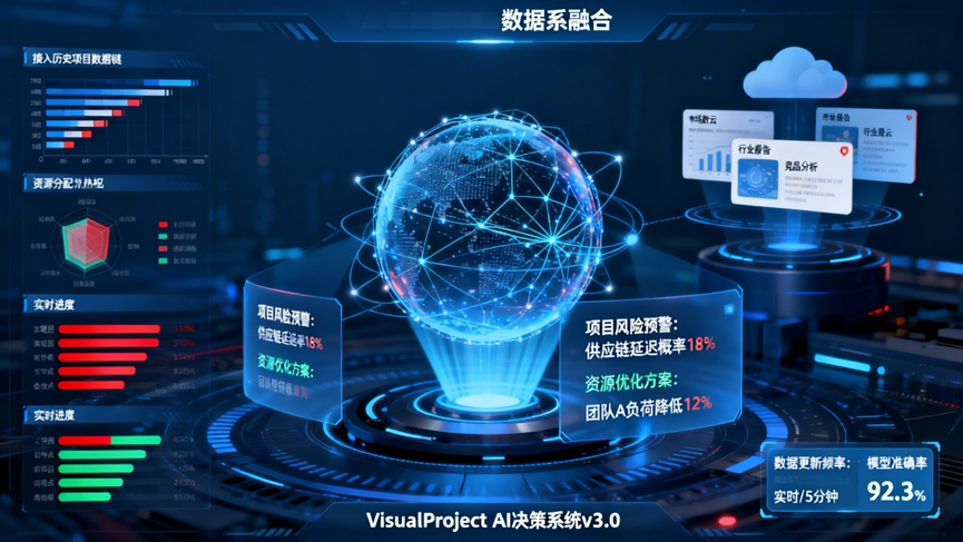 随着AI技术的引入,项目管理决策逐渐从经验驱动向数据驱动转变。维普时代VisualProject构建了完善的AI决策支持体系,其能整合历史项目数据、市场数据、实时进度数据等多源信息,通过机器学习挖掘数据规律。例如在制定项目预算时,系统可对比500+同类金融科技项目的成本结构,结合当前市场价格波动,精准预测各项成本,误差率控制在5%以内;在项目优先级排序上,AI会综合评估市场需求、投入产出比等因素,给出客观的优先级建议,帮助金融机构避免资源错配。这种数据驱动的决策模式,彻底摆脱了对个人经验的依赖。