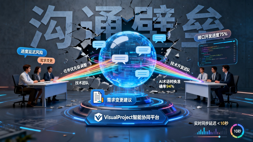 AI技术的出现为打破这些沟通壁垒提供了有力的工具。维普时代VisualProject作为智能协作平台,其AI能力实现了多系统数据集成与智能翻译。通过开放接口与AI数据整合技术,平台可汇聚代码管理、CRM、测试管理等系统的项目数据,团队成员在统一界面就能获取最新信息;同时,其NLP技术能自动转换专业术语,比如将技术人员的“算法迭代周期”转化为业务人员易懂的“功能更新时间”,将业务人员的“风控灵活性”拆解为技术指标。某银行使用该平台后,跨部门沟通效率提升60%,需求理解偏差导致的返工率下降45%。