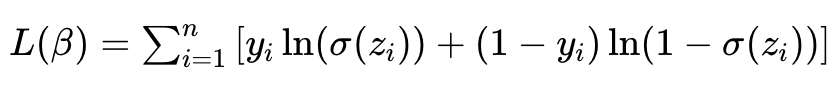 βj=βj−α∂βj∂J=βj+αn1∑i=1n(yi−σ(zi))xi(j)