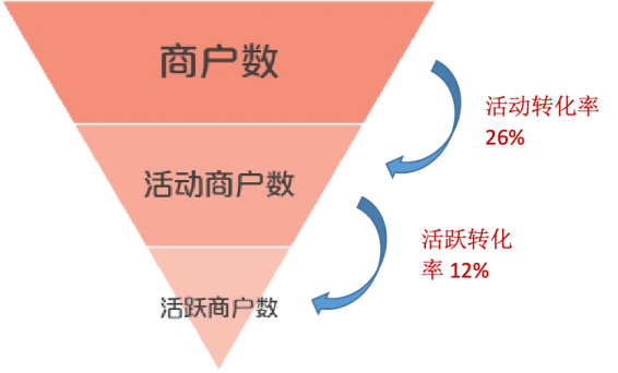 根据业务定义,门店发生交易后转化为活动门店,活动门店当月交易笔数达到30笔后转化为活跃门店,形成门店的转化漏斗。