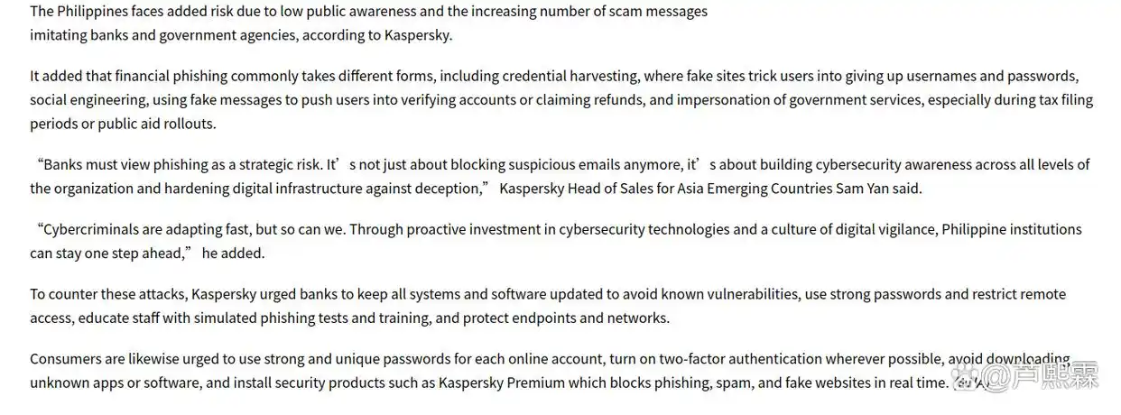 攻击者精准利用菲律宾民众对银行合规流程的认知盲区。例如,声称“根据Bangko Sentral ng Pilipinas(菲律宾央行)新规,需重新验证KYC信息”,增强可信度。此外,邮件常附带PDF附件,内含“操作指南”,诱导用户下载恶意宏文档——尽管本案以凭证窃取为主,但显示出向复合攻击演进的趋势。