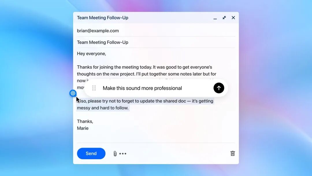 辅助编辑,可以在任何浏览器内容中选中内容请求chatgpt协助,比如编辑邮件。那么可否直接编辑confluence,在线office,gmail等?如果这样,那么这些在web上接入AI的应用将会是一个降维打击…