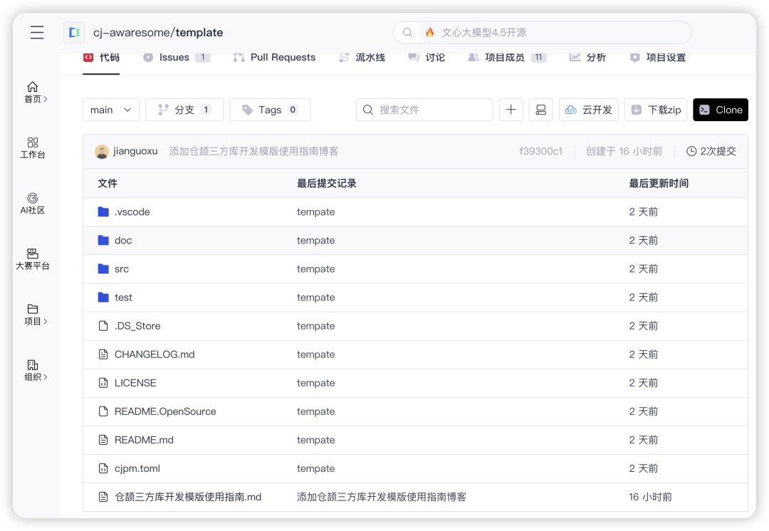 快来克隆https://gitcode.com/cj-awaresome/template项目开始贡献自己的三方库吧。