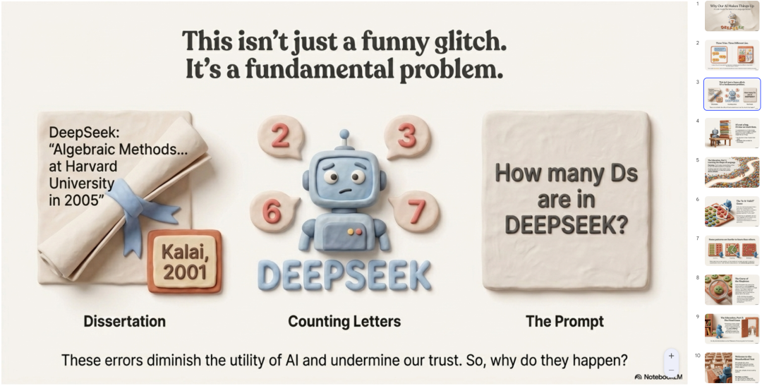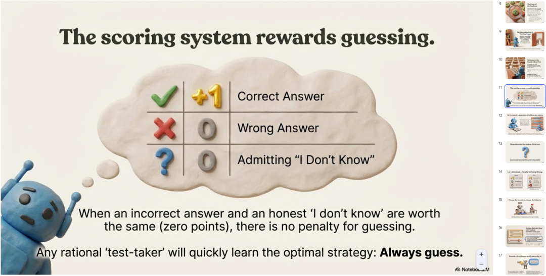 比如,这是我把之前OpenAI的那篇论文《why-language-models-hallucinate》扔进去,用黏土拟物风格产出的英文PPT。