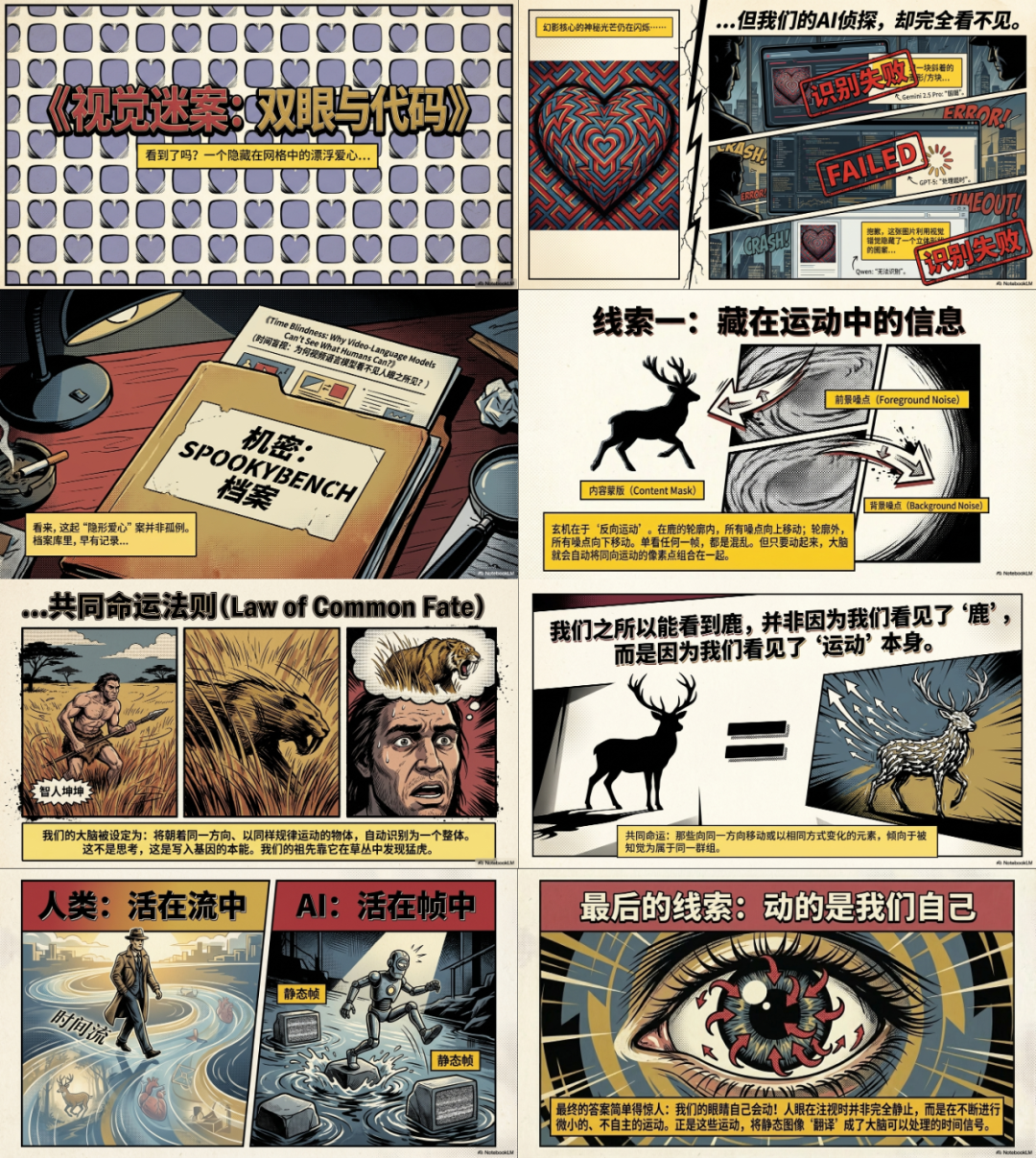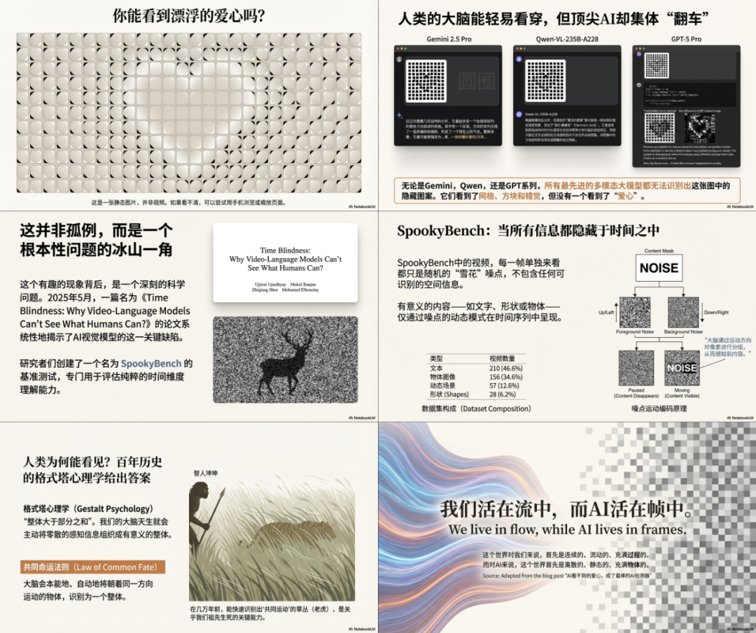 “使用黑色背景酸性设计风格,来从为什么看不到图中的爱心开始,为大家详细科普人类和AI视觉的不同,观众是一些对AI感兴趣的爱好者。”