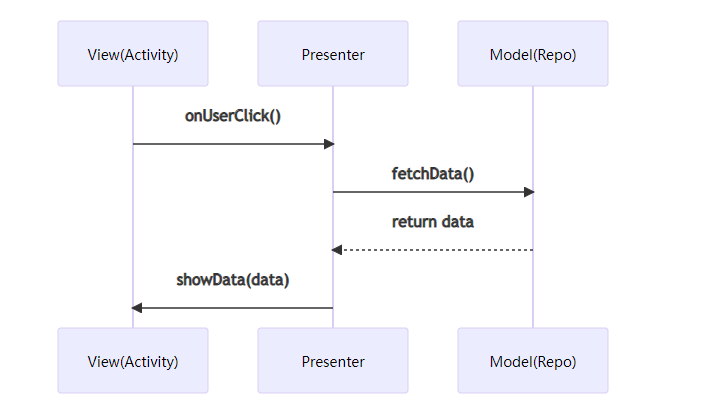 2025 年反思:MVP 是“为了解耦而解耦”的典型。它解决了 MVC 的痛点,却引入了新的复杂性。其兴盛(约 2016–2019)恰逢 Android 单元测试文化兴起,但最终被更优雅的 MVVM 取代。