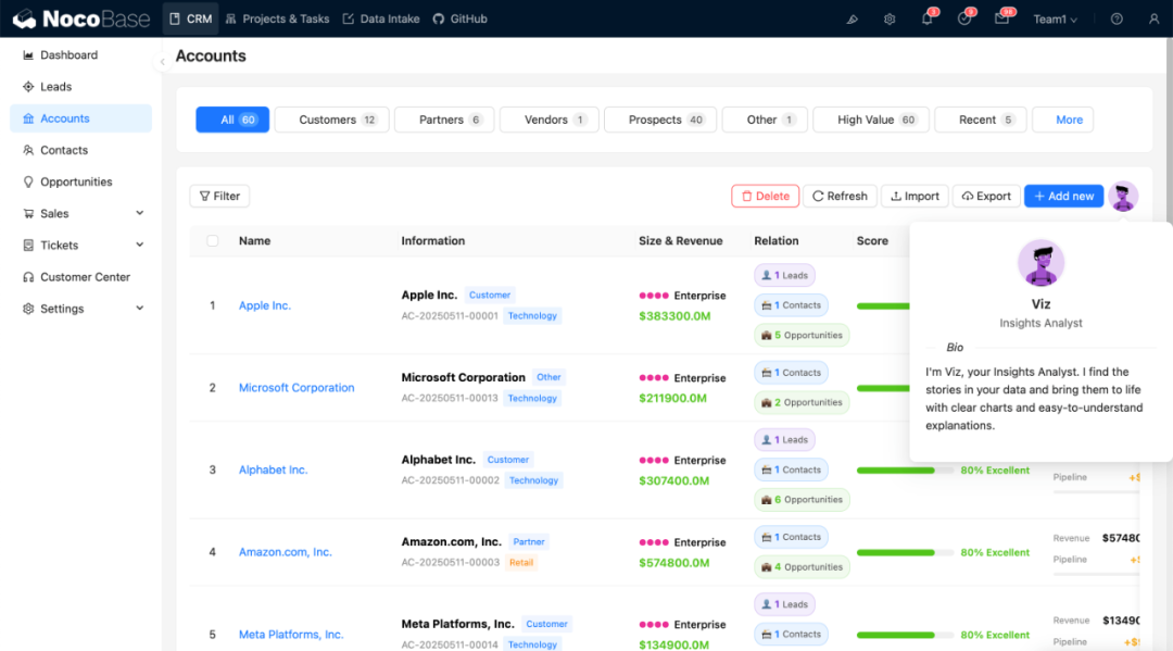 不同于停留在演示层面的 AI,NocoBase 让你能够将 AI 能力无缝集成到交互界面、业务流程和数据上下文中,让 AI 真正落地于企业场景。